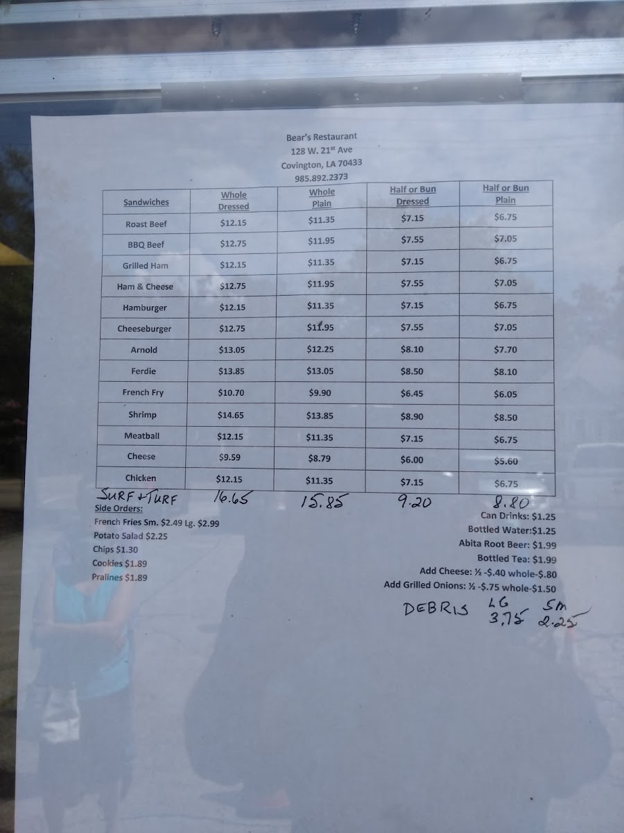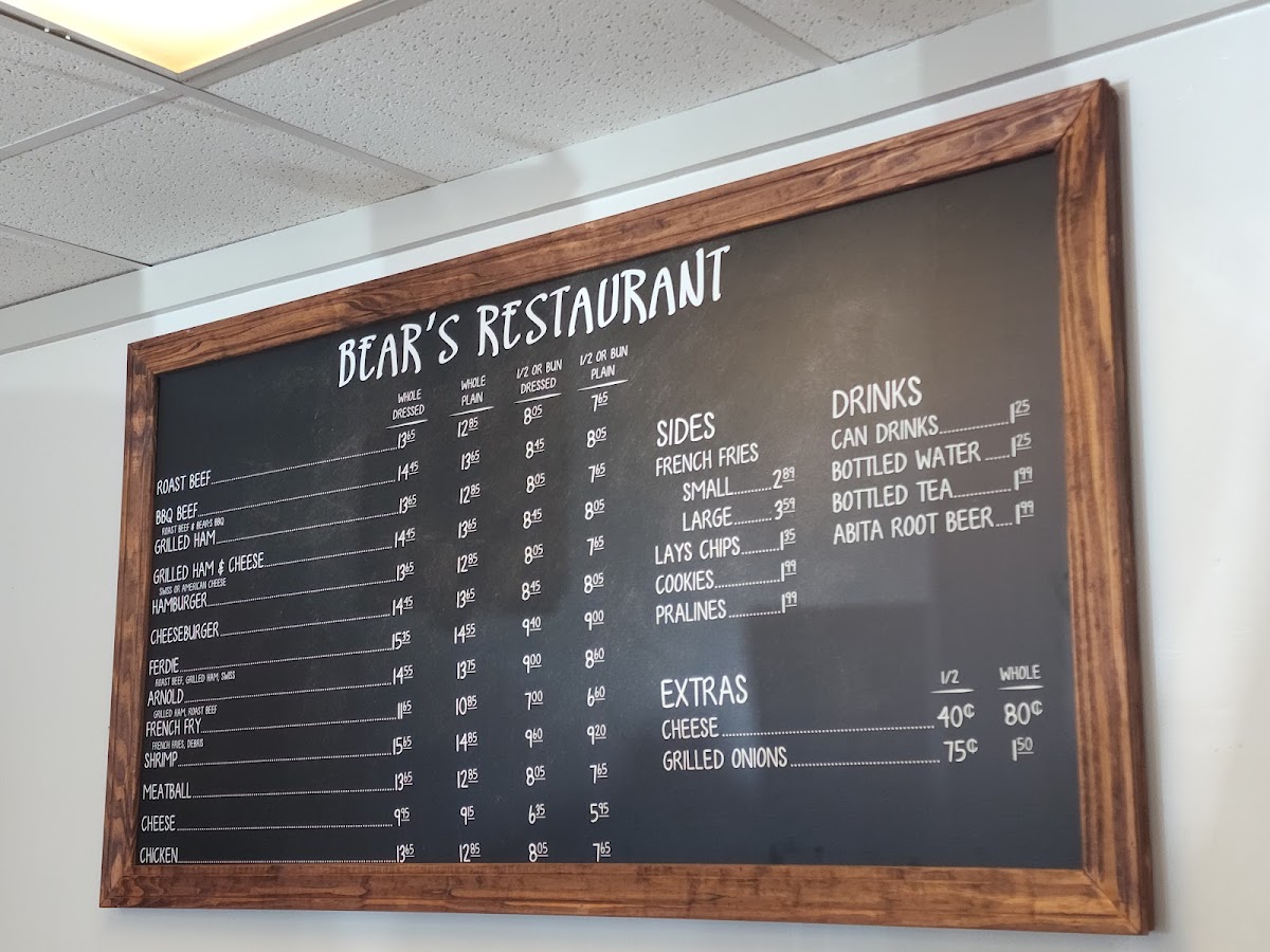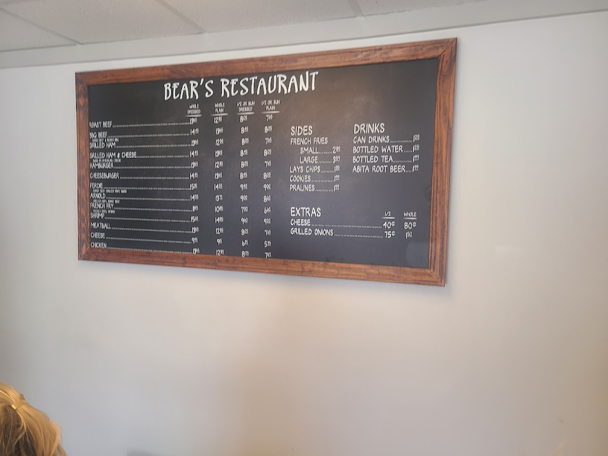 Bear's Restaurant Menu